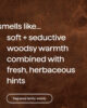 Delicato e rilassante, questo profumo delicato combina un calore legnoso con sentori freschi ed erbacei. Sembra di essere fuori dai guai e di essere sotto la doccia.
