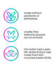 • Flacone (senza pompa) realizzato con l’80% di plastica riciclata (PCR).