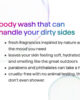 • Bagnoschiuma a rapida insaponatura e risciacquo pulito con detergenti aggressivi.