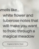 - fragranza di lunga durata: profuma di un prato magico che si diletta, con note di fiori bianchi e tuberosa