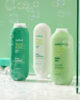 - Uno shampoo e un balsamo per uso quotidiano arricchiti con cetriolo, alghe e tè verde che lasciano una fragranza di lunga durata.